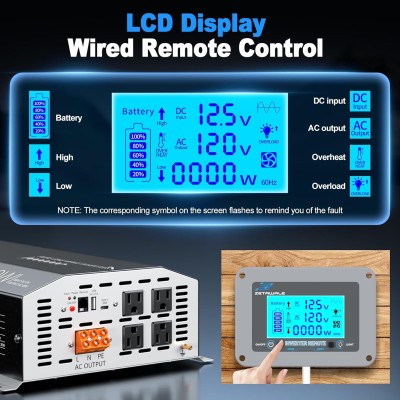 3000 Watt Pure Sine Wave Inverter 12v DC to 110v 120v AC Converter,6000W Peak Power Inverter with 4 AC Outlets,USB Port,Type-C,Remote Cont