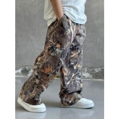 SHEIN Teen Boy Fashion Casual Vintage Designed Wash Water Blue Loose Straight Leg Jeans, Thanksgiving Costume Dailywear And Fall/Winter